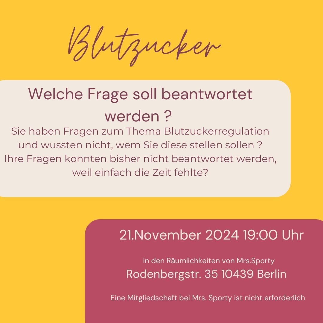Alle Fragen können bereits vorab an mich gesandt, bei Mrs.Sporty angegeben oder direkt in der Runde gestellt werden.